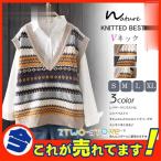 ニット ベスト レディース vネック セーター チェック柄 トップス ノースリープ 秋服 プルオーバー ショット丈 おしゃれ 重ね着 ゆったり