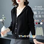 カーディガン レディース ニット Vネック 長袖 無地 秋 冬 春 羽織り シンプル ベーシック カジュアル フード付き ゆったり 細見え トップス 母の日