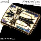 ZIPPO 重厚アーマー 限定ニューグランドクロス ゴールド ジッポライター 金タンク シェルインレイ&カーボン象嵌 シリアルNo.入り