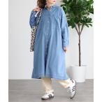 シャツワンピース ウエストドロストデニムシャツワンピース