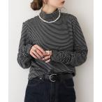 tシャツ ボーダー柄両面起毛スムースタートル長袖 レディース