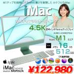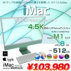 【中古パソコン】Apple iMac 24inch MGPJ3J/A A2438 4.5K 2021 一体型 選べるOS [Apple M1 8コア 16GB SSD512GB 無線 BT カメラ 24インチ 純箱 Green ]:美品