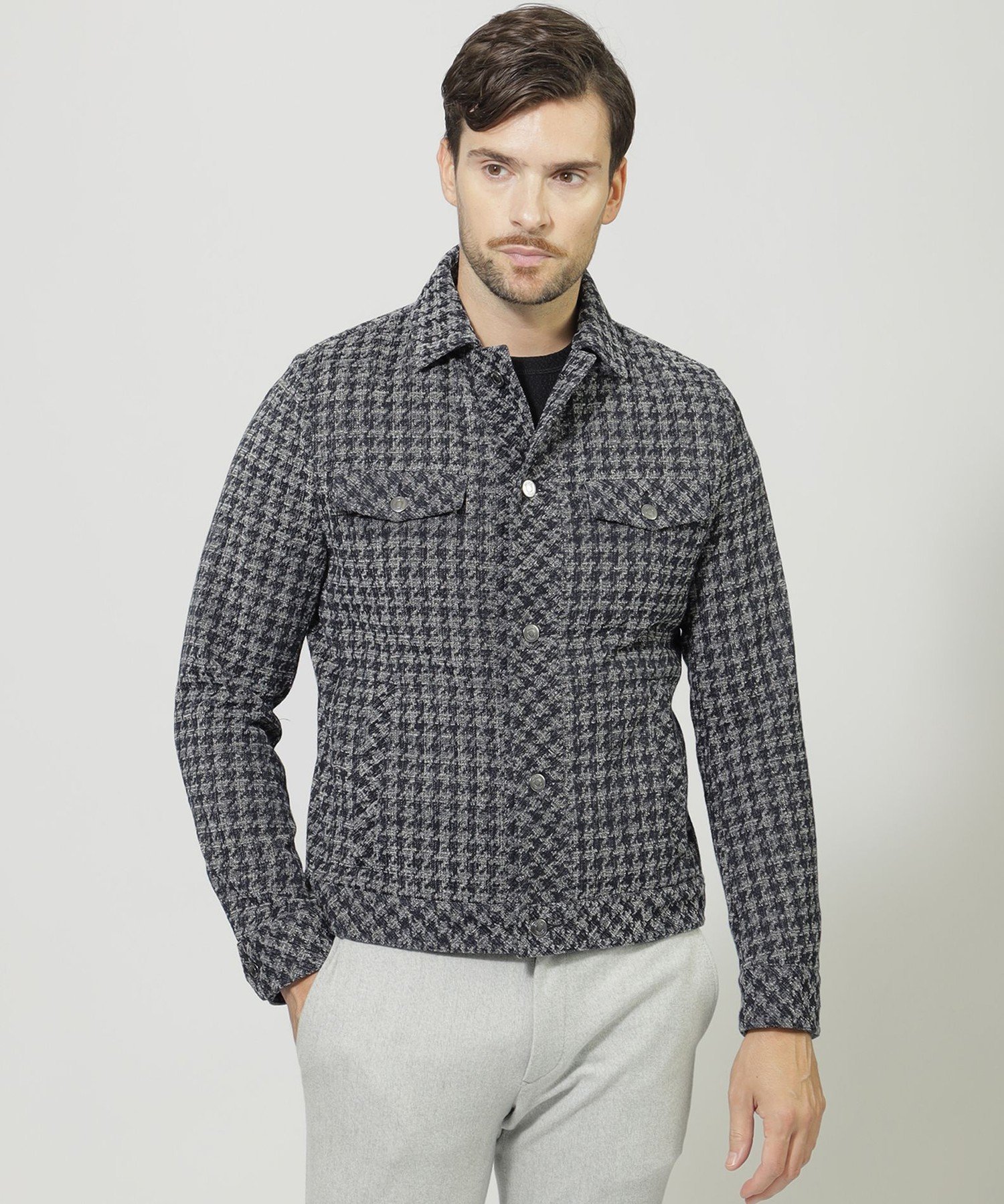 【SALE/25%OFF】EPOCA UOMO 【PRIMA COLLECTION】千鳥ジャカードブルゾン エポカ ジャケット・アウター ブルゾン・ジャンパー ネイビー【送料無料】
