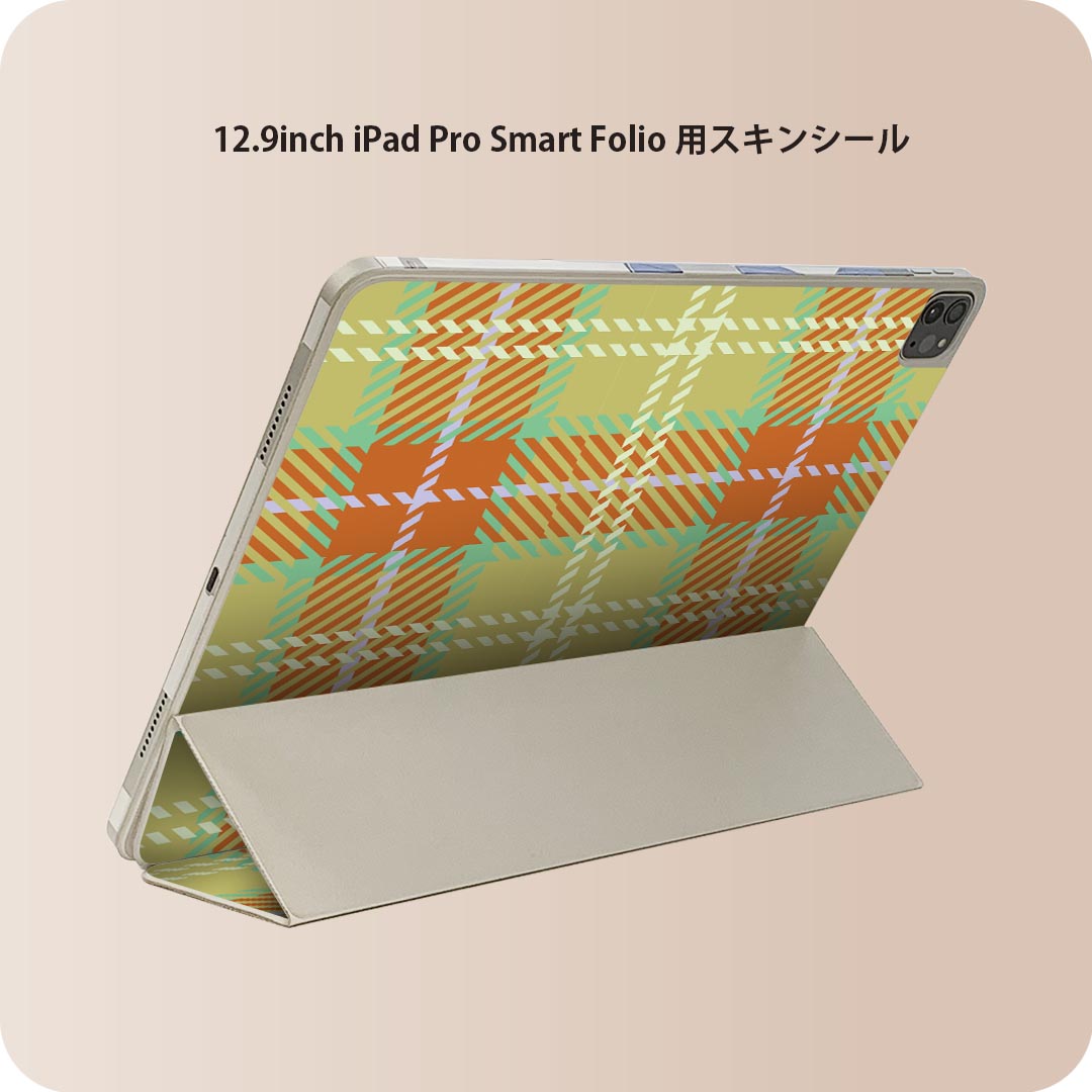iPad Smart Folio 用 12.9インチ iPad Pro(第4世代、第5世代、第6世代)対応 apple アップル アイパッド 全面スキンシール フル 前面 背面 保護シール 人気 020140 チェック オレンジ