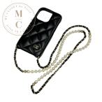 シャネル CHANEL 携帯・スマホアクセサリー ブラック ゴールド ココマーク マトラッセ キャビアスキン iPhone14pro iPhoneケース