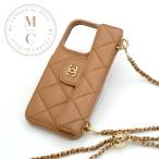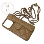 シャネル CHANEL 携帯・スマホアクセサリー ベージュ ゴールド ココマーク マトラッセ iPhone14pro iPhoneケース スマホケース チェーン