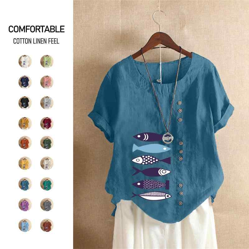 Tシャツ レディース 春夏 レトロ 大きいサイズ ビッグサイズ ゆったり ルーズフィット プルオーバー 半袖 クルーネック コットンリネン 綿麻混 キャラクタープリント カジュアル トップス