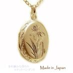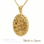 K18YGイエローゴールド ロケット ロケットペンダント 写真入れ 薬入れ ピルケース 楕円形 オーバル 小判型 手彫り柄 地金 艶消し ホーニング 【国産】