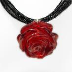 K18イエローゴールド コハク 琥珀 アンバー レッドアンバー ペンダント ネックレス 薔薇 バラ お花 フラワー 赤い琥珀 天然石 プレゼント 母の日【国産】